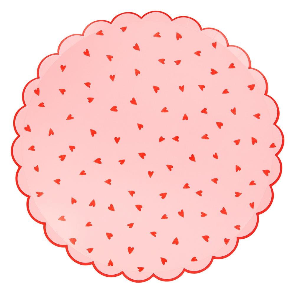Herzförmige Teller von Meri Meri. Rosa und Rot ergeben eine perfekte, trendige und romantische Farbkombination. Diese Pappteller bestechen durch kleine Herzen und einen gewellten Rand für einen fantastischen Vintage-Look.
