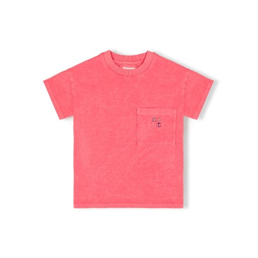 T-shirt in de kleur Tomato van Nixnut. Een heerlijk shirt met leuk stonewashed effect! De loose fit zorgt voor extra bewegingsvrijheid tijdens spelen. Het leren Nixnut labeltje is bevestigd aan de onderkant.
