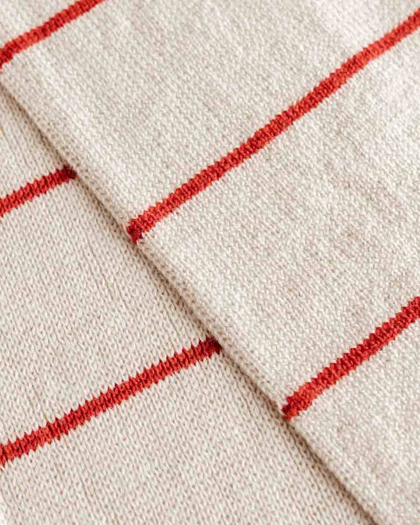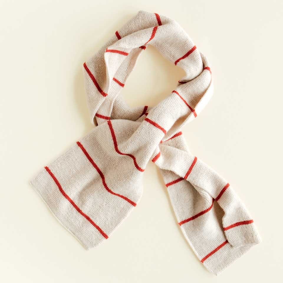 Schal Igor in den Farben Creme und Rot von Hvid. Hüllen Sie Ihr Kleines in Wärme mit diesem Schal aus Merinowolle mit roten Streifen. Weich, kuschelig und perfekt für kühle Tage.