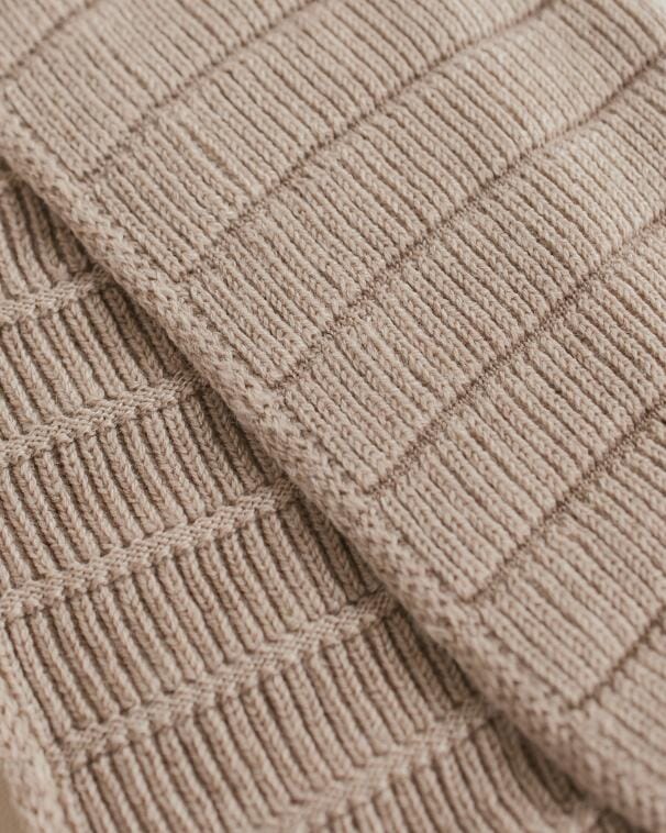 Sjaal Jacobino in de kleur Sand van Hvid. Dit is een ribgebreide sjaal met een strakke, gestructureerde look en een heerlijk zachte feel. De textuur zorgt voor een rustige, verfijnde uitstraling, terwijl de royale lengte het mogelijk maakt de sjaal stijlvol te wikkelen, knopen of losjes te draperen. Een perfect extra laagje voor koudere dagen: minimalistisch en tijdloos.