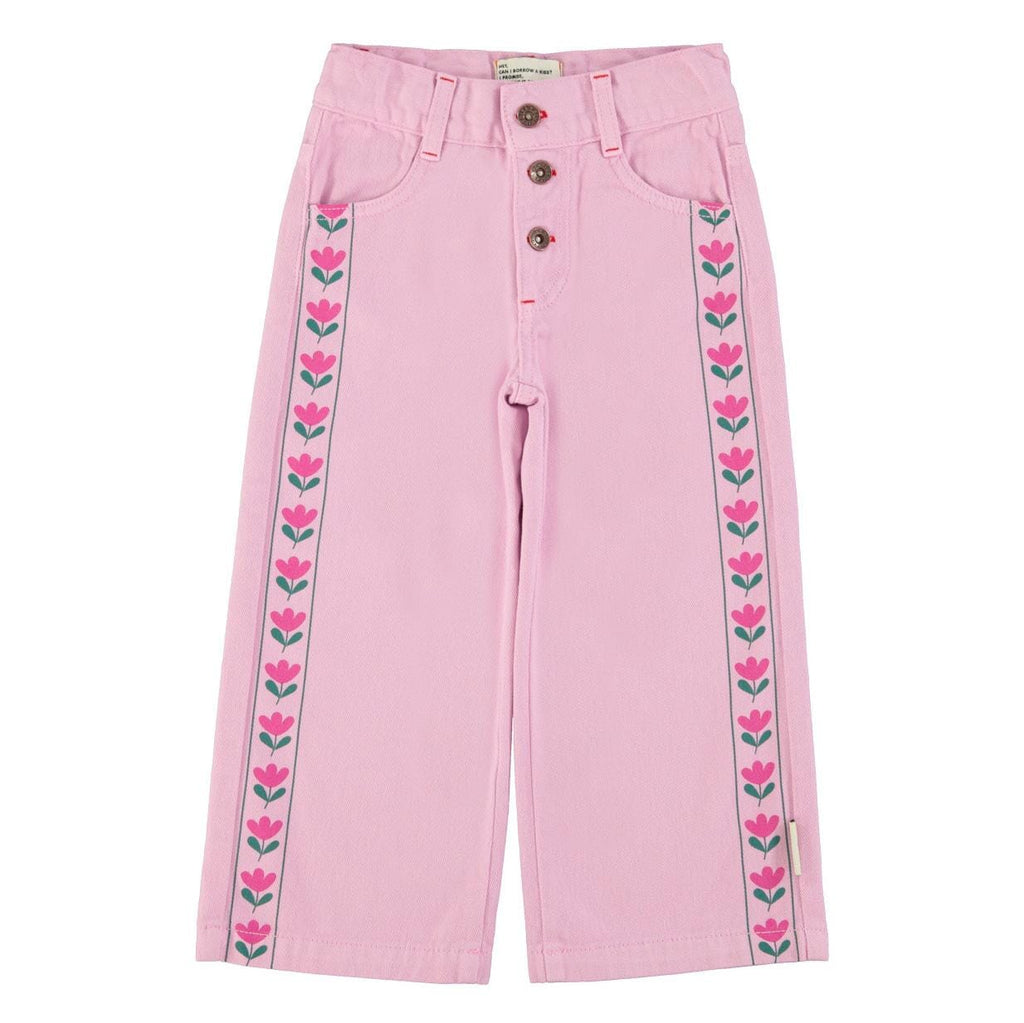 Wijd uitlopende broek met verstelbare taille en riemlussen van Piupiuchick. Gedetailleerd met een brede zijstreep met bloemenprint.