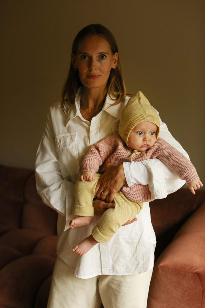 Die Inga Strickjacke in Puder von Hvid. Diese Strickjacke ist nahtlos in einem Stück gestrickt und bietet Ihrem Baby außergewöhnlichen Komfort. Der elastische Halsausschnitt mit dezentem Stretchfaden bietet zusätzliche Dehnbarkeit und Komfort. Gefertigt im weichen Fischgrätenmuster und mit hübschen Holzknöpfen versehen, ist diese Strickjacke sowohl stilvoll als auch praktisch.