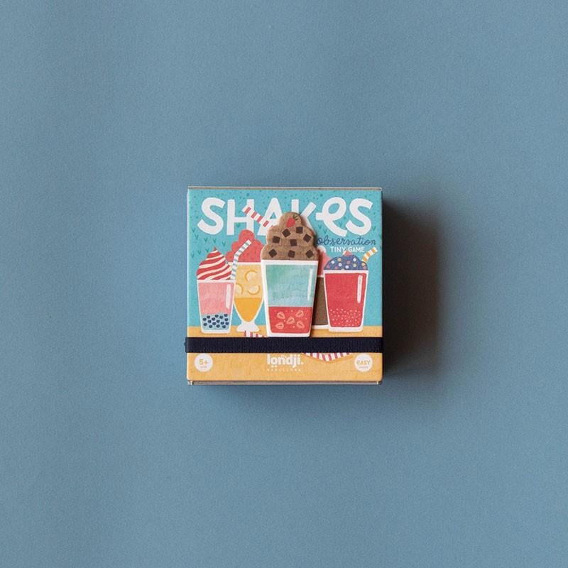 Das handliche Brettspiel „Shakes“ von Londji. An einem Sommernachmittag lädt eine Smoothie-Bar dazu ein, frische Smoothies zu kreieren. Wer ist am schnellsten? Bei „Shakes“ kommt es auf Beobachtungsgabe und Schnelligkeit an: Wer schafft es, drei Smoothies vor den anderen zu trinken?