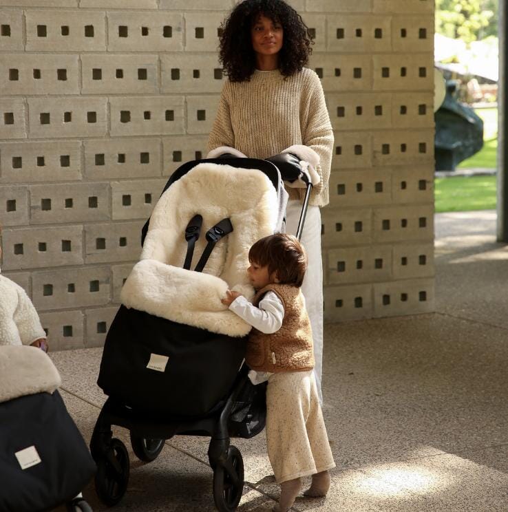 Puffmuff® voetenzak in de kleur Milk van BINIBAMBA. Deze voetenzak is het geheim om ongeacht het weer, zorgeloos naar buiten te gaan... Hij is volledig gevoerd met schapenvacht en heeft een wind- en waterbestendige buitenlaag die je kindje lekker warm houdt.