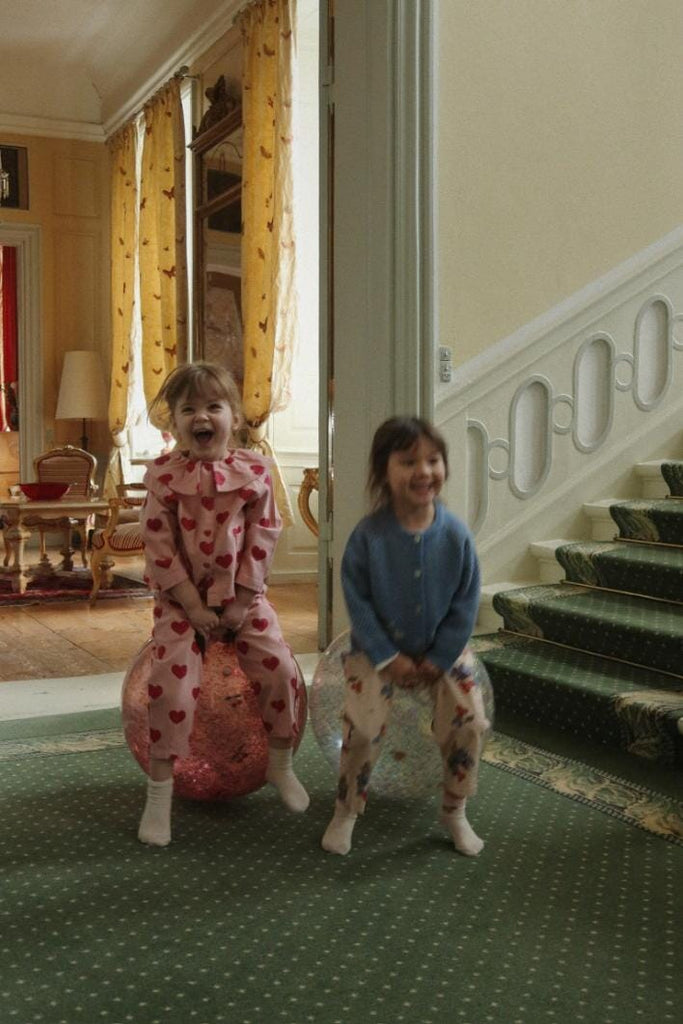 Der glitzernde Hüpfball von Konges Sløjd im Zitronenmuster. Dieser große Hüpfball hat einen Griff für sicheren Halt. Gut festhalten und los geht's!