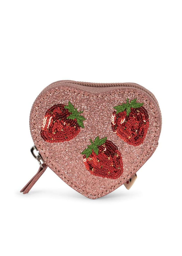 Hartvormige portemonnee van Konges Slojd. Dit glittertasje is geknipt om je centjes en kleine snuisterijen in te bewaren. Het heeft een ritssluiting.