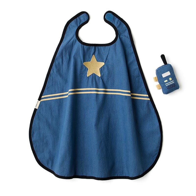 Verkleedpakje Police patrol van Kid's Concept. Deze tweezijdige politiecape is klaar voor actievolle fantasiespelletjes. Dankzij de eenvoudige klittenbandsluiting kunnen kinderen hem gemakkelijk aan- en uittrekken terwijl ze in de huid kruipen van een hulpverlener. De cape stimuleert fantasierijke scenario's, van het oplossen van mysteries tot het regelen van het verkeer. De set bevat ook een gewatteerde walkietalkie, perfect om versterking te bellen of om in contact te blijven tijdens belangrijke missies. Of het nu gaat om het handhaven van de orde of het helpen van anderen, deze cape is een veelzijdige aanvulling op het verkleedkledingassortiment. Dit is een OEKO-TEX-gecertificeerd product.