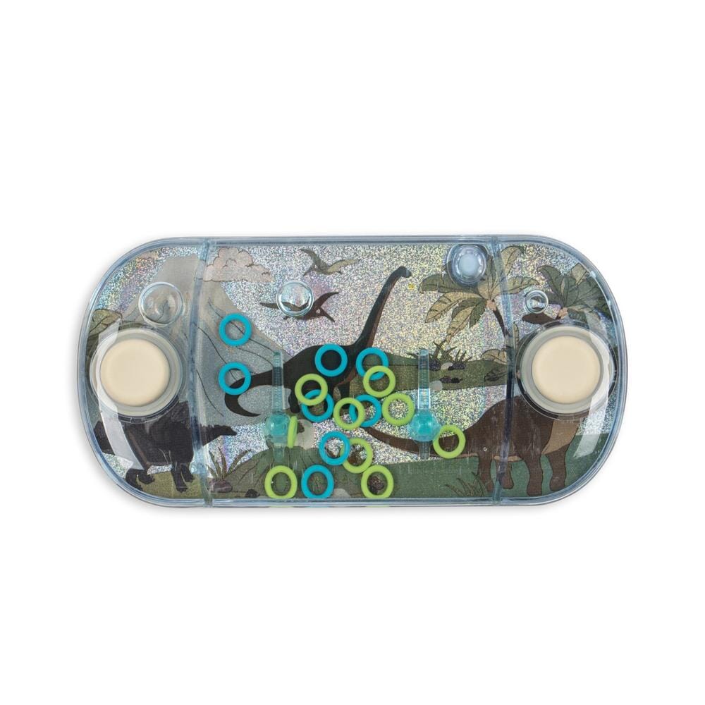 Mini-spelletje ringwerpen in het thema Dinomite van Konges Sløjd. Dit leuke waterringenspel is ontworpen met de kenmerkende Konges Sløjd-achtergronden en daagt kinderen uit om op de knoppen te drukken en de kleurrijke ringen vakkundig naar de drijvende paaltjes te leiden.